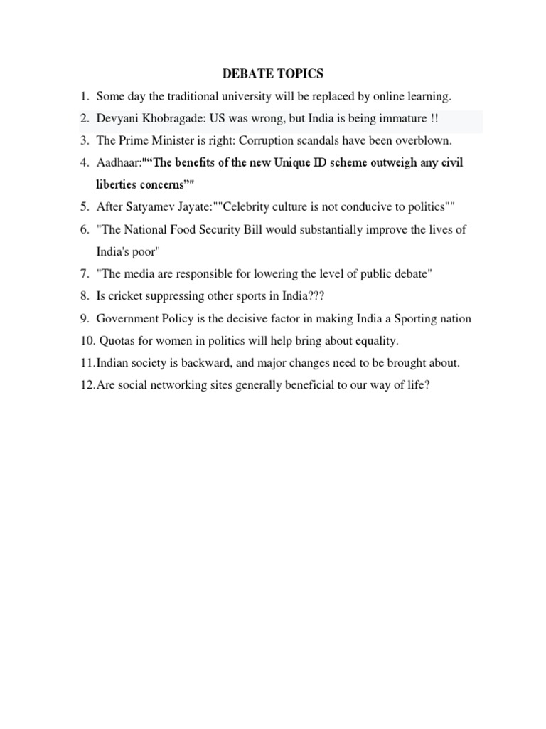 If you're looking for some of the top debate topics, then you're certainly in the right place. Looking for interesting debate topics for your upcoming debate? You may think that finding the top debate topics is as popular debate topics. List of funny debate topics. We have gathered together a range of debating motions, covering all sorts of topics, from sport to citizenship, to science and international relations. Have a look at this blog for some 200+ latest and popular debate topics for students. Is debate a must in college students? Learn about debate motion types, how to choose a topic, and the importance of considering counterarguments. It is high time for digital devices to replace notebooks and paper. You were probably aware of the debate club in high school, and maybe you were a part of it yourself! In high school, individuals are at an age group. Interesting debate topics and ideas for students. 137 best debate topics 2020 + tips on debate speech writing.